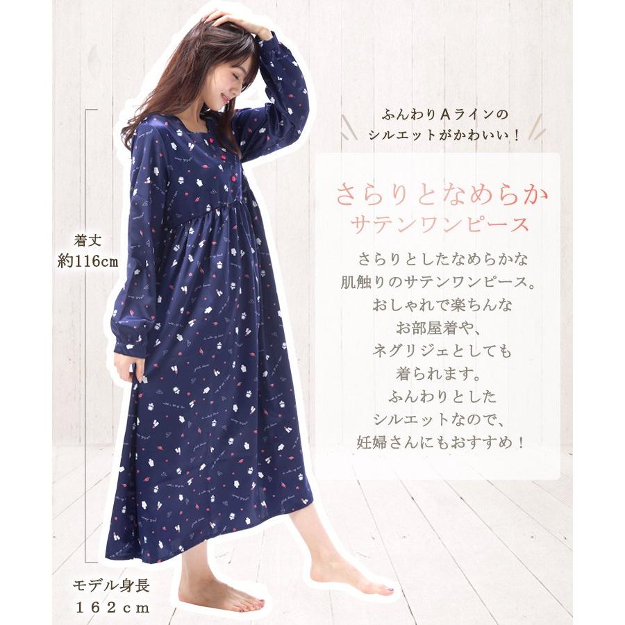 楽天市場 ネグリジェ 長袖 サテン パジャマ ワンピース シルクタッチ L0801 L0803 トラベルパジャマ 秋 マタニティ レディース 総柄 無地 ルームウェア Aライン 産後 入院 プレゼント かわいい おしゃれ M L サイズ L0801 0803 キャラlove
